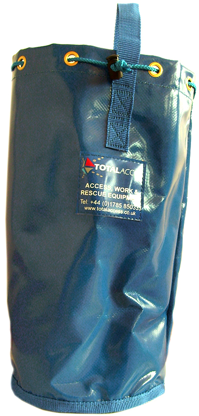 Heavy duty PVC, 8 eyeleted holes with 3mm cord and cord grip. 1 drain hole, 1 25mm x 200mm attachment loop, double flag boxed and bar tacked. With carbine hook. Stitching around the base reinforced with 25mm webbing. Size: H 400mm, Base 200mm