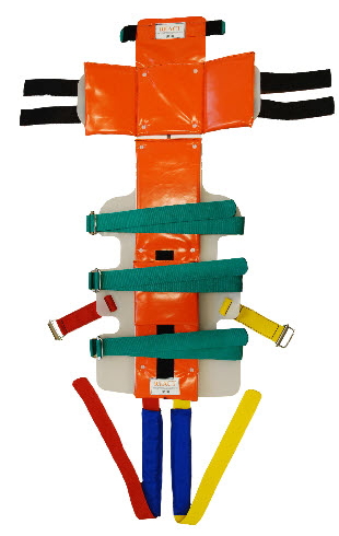 The Slix Spinal Splint is designed to be used with all of the Slix Stretchers. The Head pocket & Back Pad are padded and the sides and top of the Head Pocket are also stiffened for extra protection. Rotating VelcroTM head closures ensure security and versatility. All standard cervical collars are compatible. Colour coded Crutch Straps are provided along with 3 cross body straps. All are rated at 400K The Lumbar Pad is adjustable for position, a unique feature, which combined with the new design Crutch Straps, allows one size fits all, with greater casualty comfort and security.
