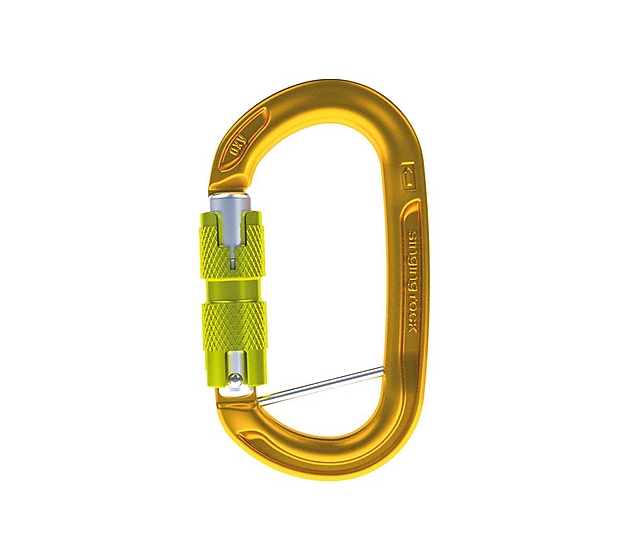 Hot-forged I-beam construction. Each carabiner is individually tested for a strength of 10 kN