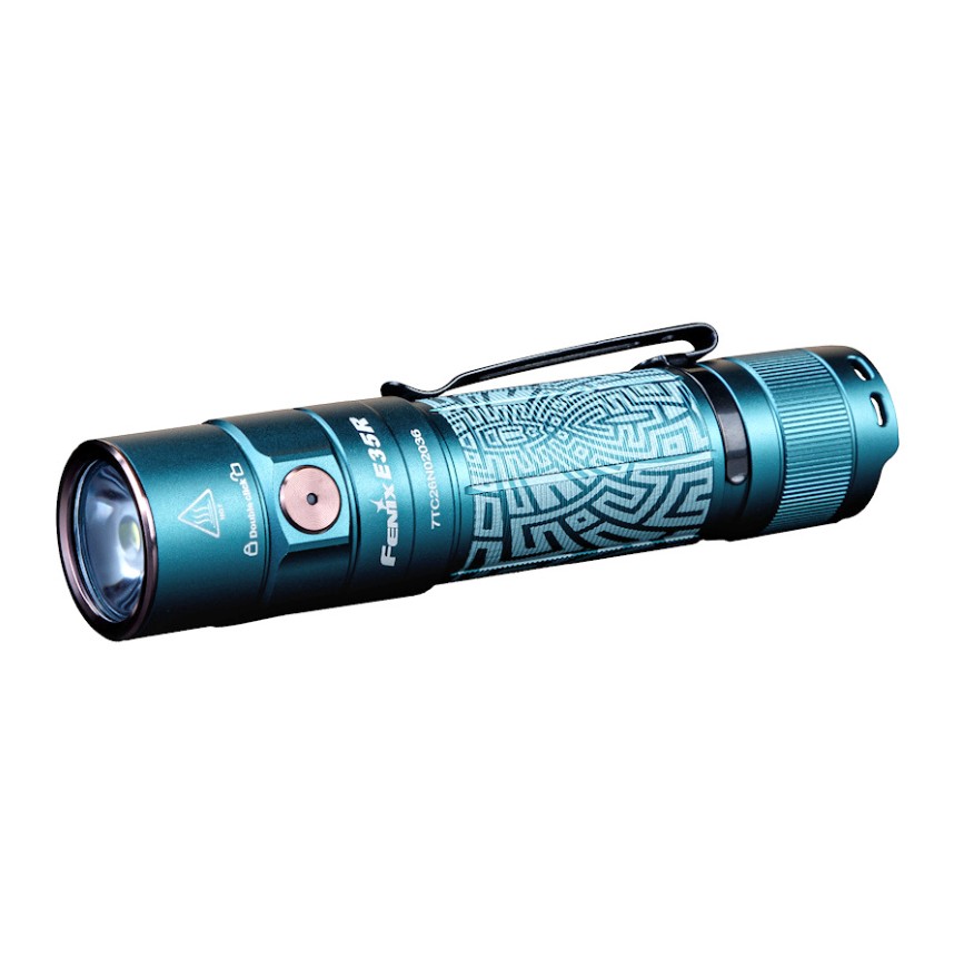 Fenix E35R Graffiti is a special edition model of the standard Fenix E35R LED torch. It is a compact, rechargeable every day carry torch with a powerful 3100 lumen maximum output and 260m max beam distance.