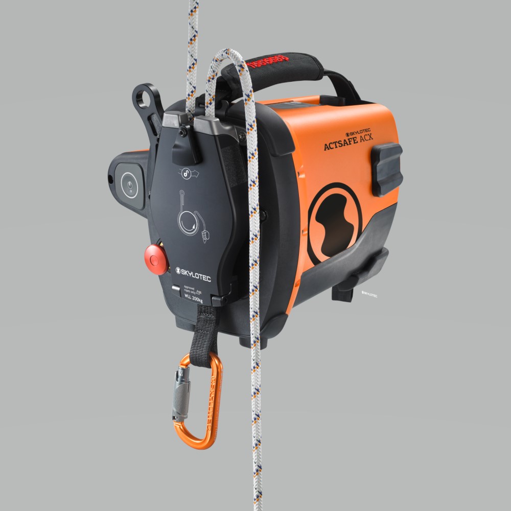 The ACX battery-powered hoist is a motorised system to ensure the transport of persons or loads to areas that are difficult to access and where occasional or recurring work is carried out. ACX is used, among other things, for cleaning facades or windows, for the maintenance of complex building structures, for the rotor blade maintenance of wind turbines or for transporting loads on masts.