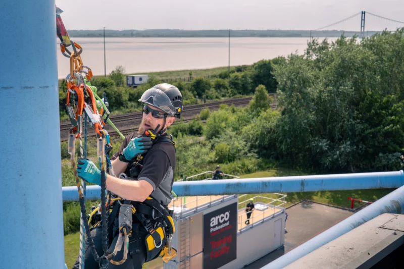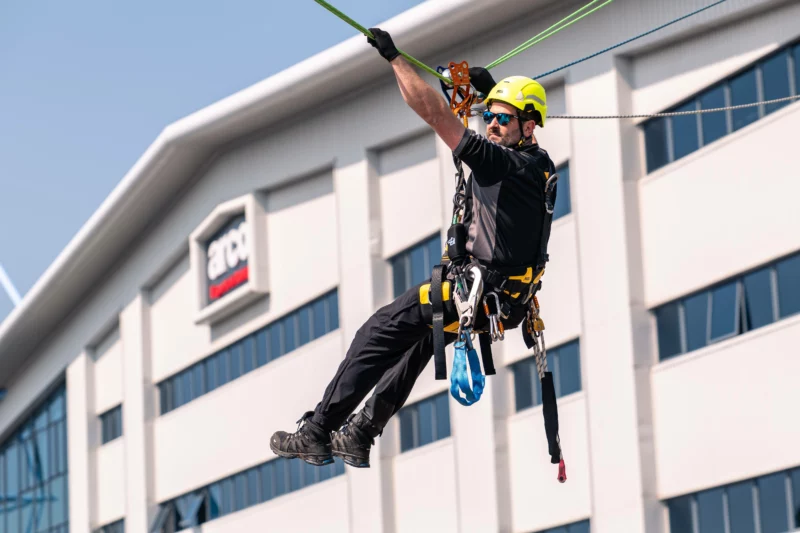 Arco’s Professional Safety Services team showcased their expertise with a dramatic working at height demonstration at the Hull Training Centre in June, , before traversing the ropes to deliver a striking visual display.