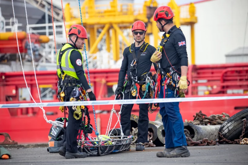 Rob Messenger, Arco’s team leader on the day, said: “When the teams assembled on the quayside, it quickly became apparent they were all highly capable and well-drilled in technical rope rescue.