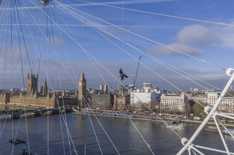 Working at height specialists from Arco Professional Safety Services abseiled down the lastminute.com London Eye with BBC Breakfast presenter John Maguire to give the iconic attraction a fresh coat of paint on the first day of spring.