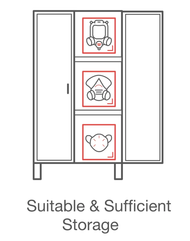 – When storing your RPE ensure it is kept clean, can be easily accessed and is not exposed to potentially damaging conditions. Store your RPE in a dry place and avoid storing with other items such as consumables or machinery.